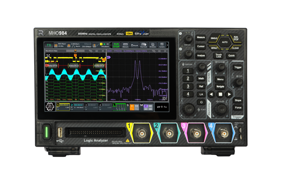 MHO900 Series Ultra-Portable High-Resolution Oscilloscopes is an economical oscilloscope. Compact in size, it features 1,000,000 wfms/s capture rate, max. memory depth of 500 Mpts (option), 12-bit high resolution and low noise.